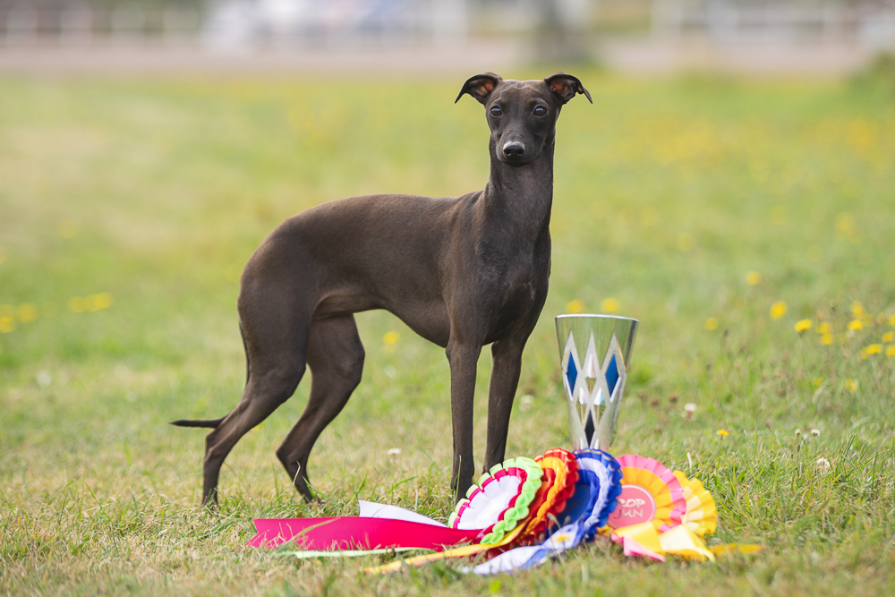 The fact that this beautiful girl is now part of our team at Oiscoitalians was firstly made possible through the collaboration and insight of kennel Greyout, Sauli & Riina and Regine Jensen. From this came a litter of eight gorgeously even puppies that were very hard to tell apart. This litter represents a blend of Canadian, American, and European lines (pedigree), and will, on top of beaty and sound construction, make a valuable contribution to the gene pool in Finland.