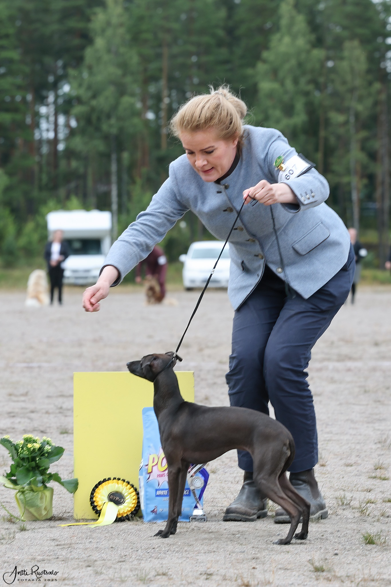 And thirdly, Golde is with us because she is owned, loved, trained, and handled by our dear friend, Minna Hautamäki. We have shared this hobby for some 15 years already and what a way to continue the journey… At just 11 months old, Golde is already a Finnish Junior Champion and Junior Vice World Winner 2025.