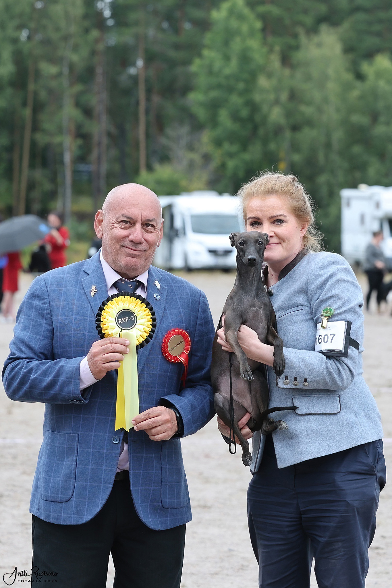 In this photo she is celebrating BOB at Turku all breed dog show. The beautiful photo is taken by Riina Lummekari.